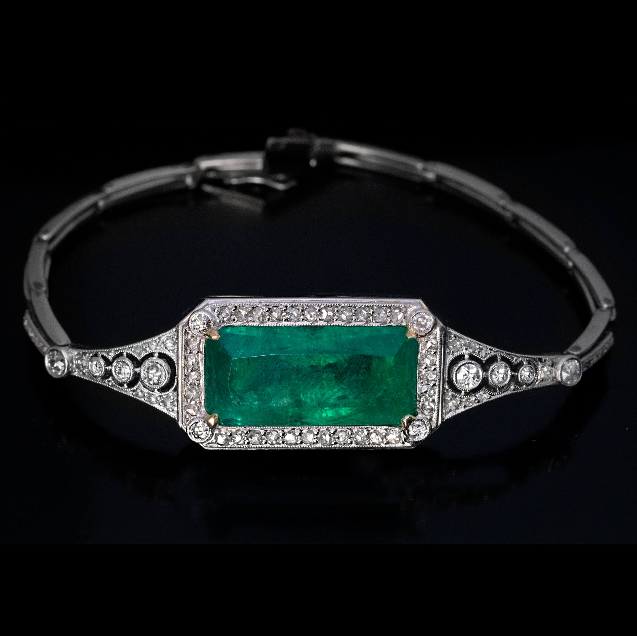 Antique Art Deco emerald, diamond and platinum bracelet c. 1920