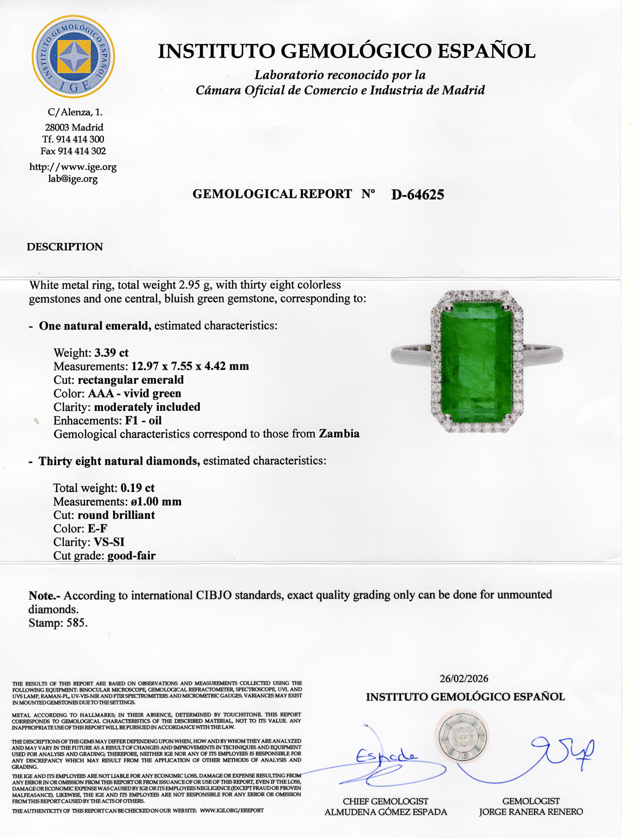Vivid Green 3.39 Ct Emerald Diamond Engagement Ring Ref: 812650