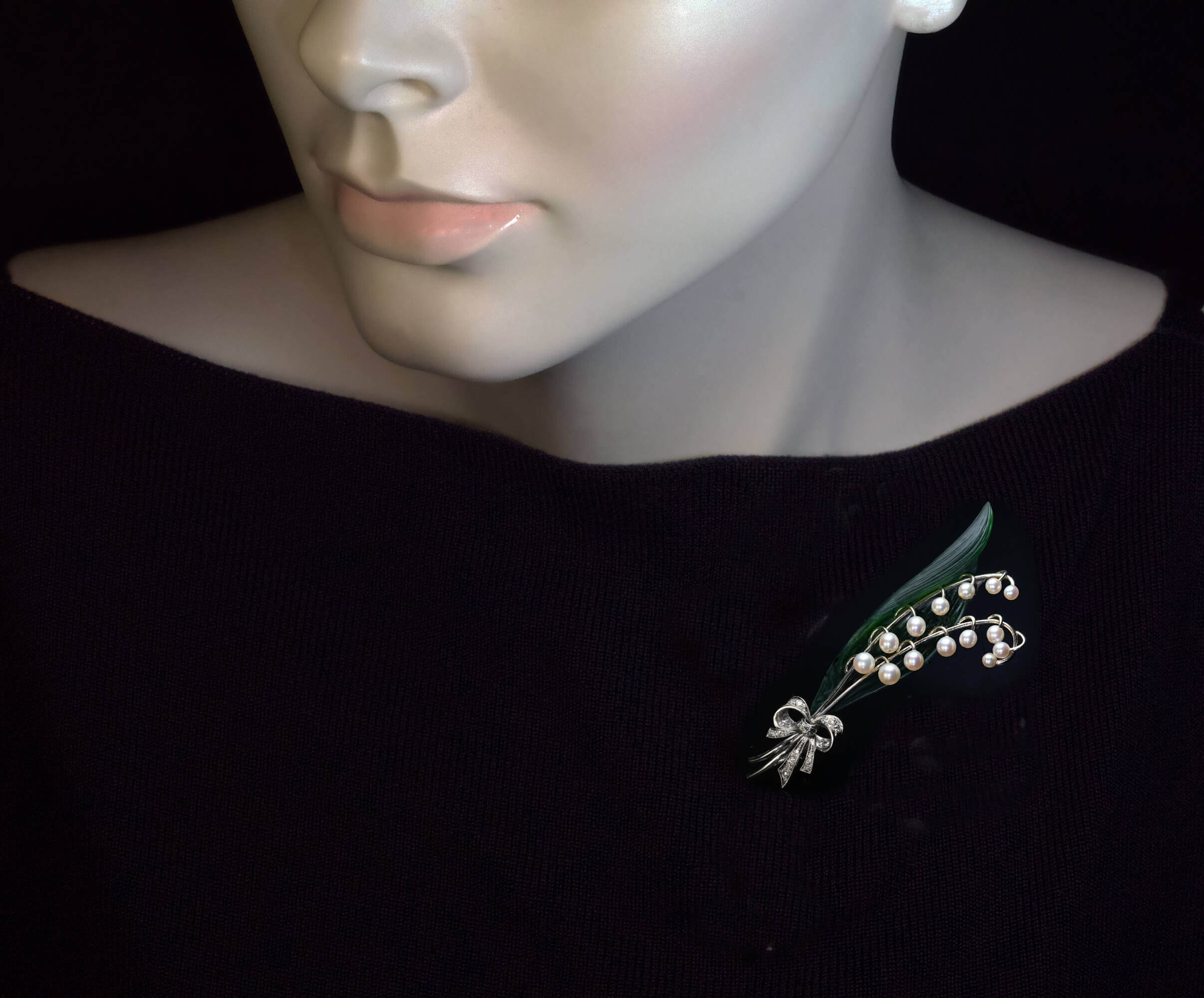 Vintage Pearl Diamond Jade Lily of the Valley Brooch Ref: 440762