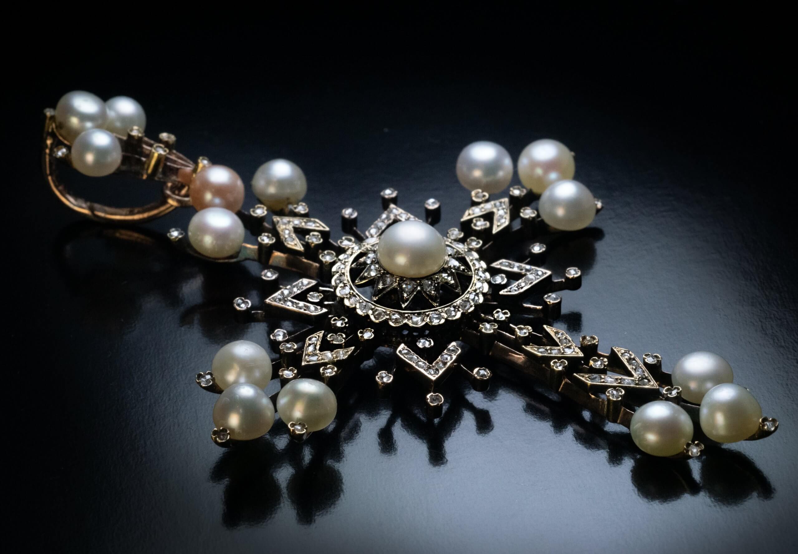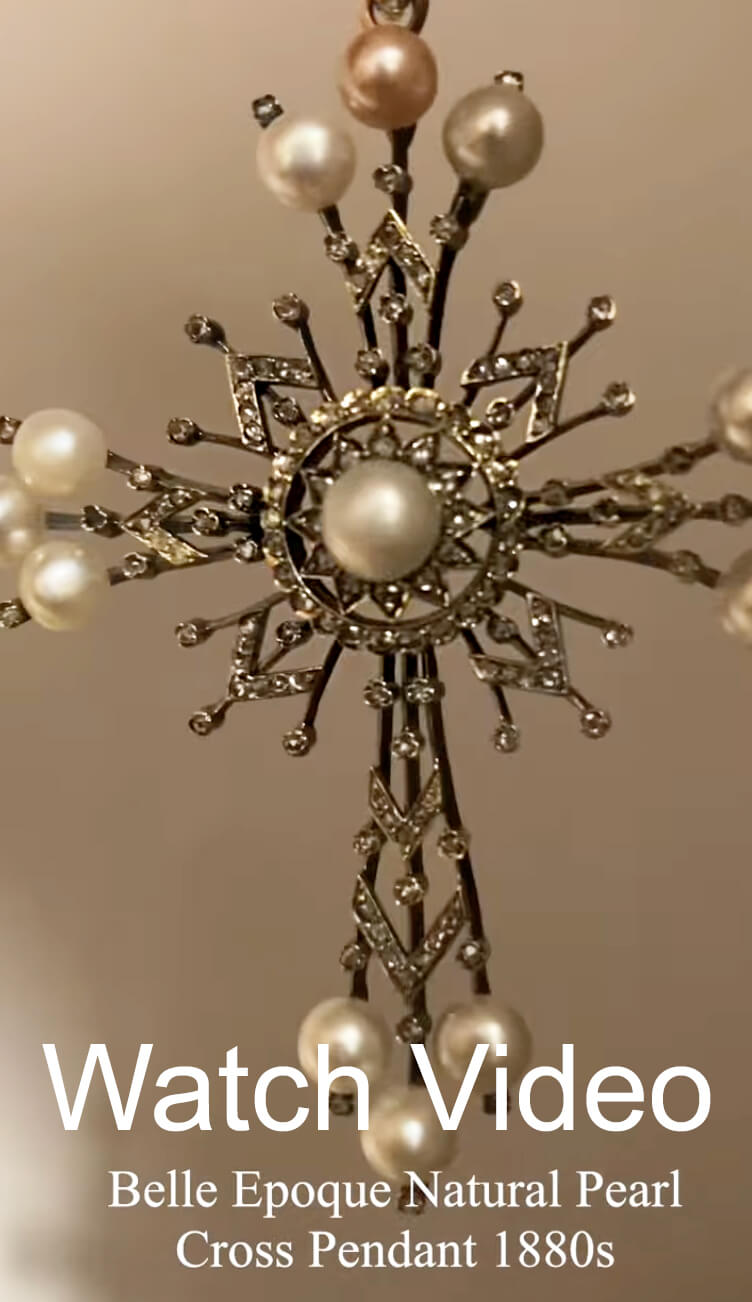 Large Belle Epoque Natural Pearl and Diamond Cross Pendant Ref: 287604