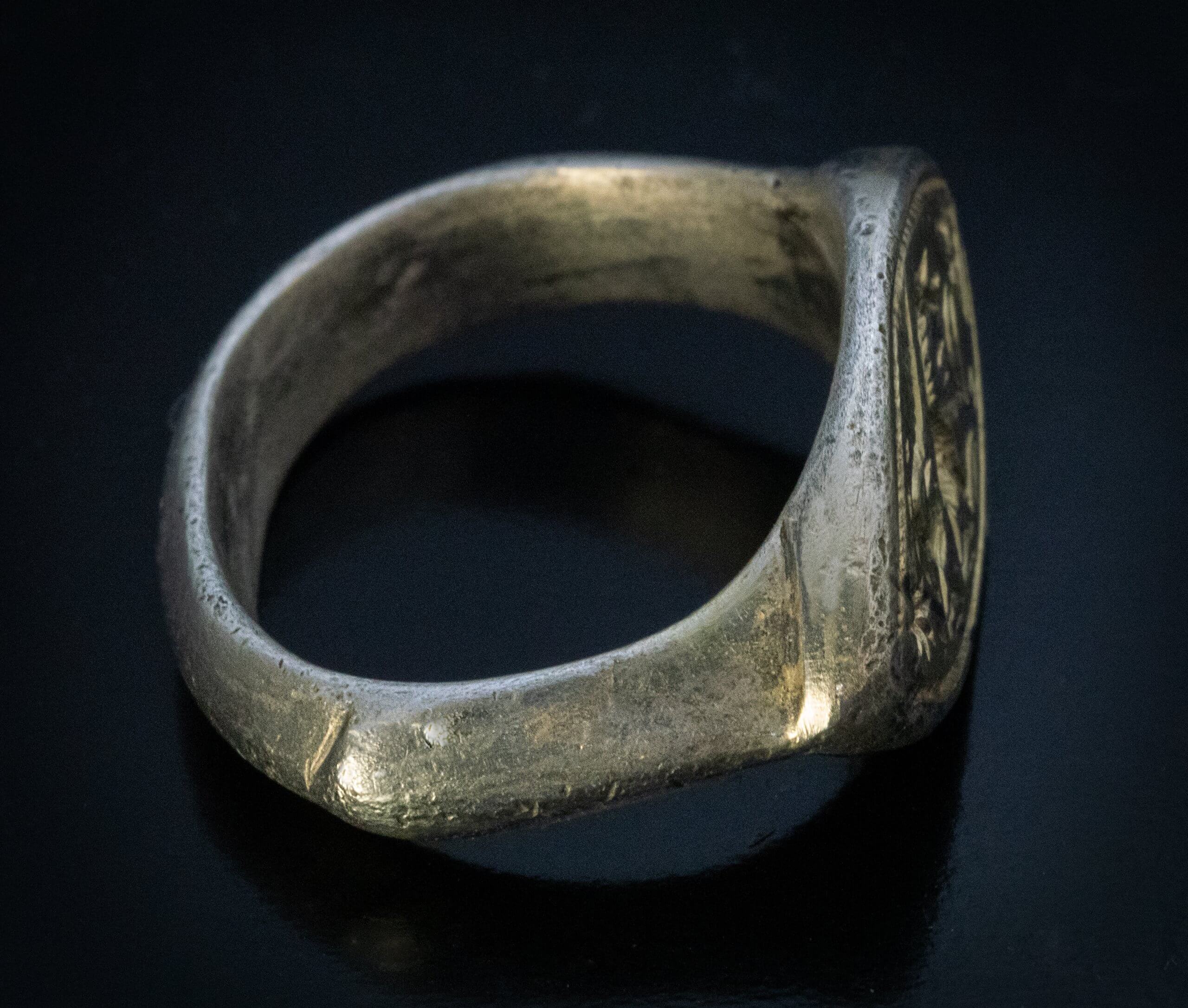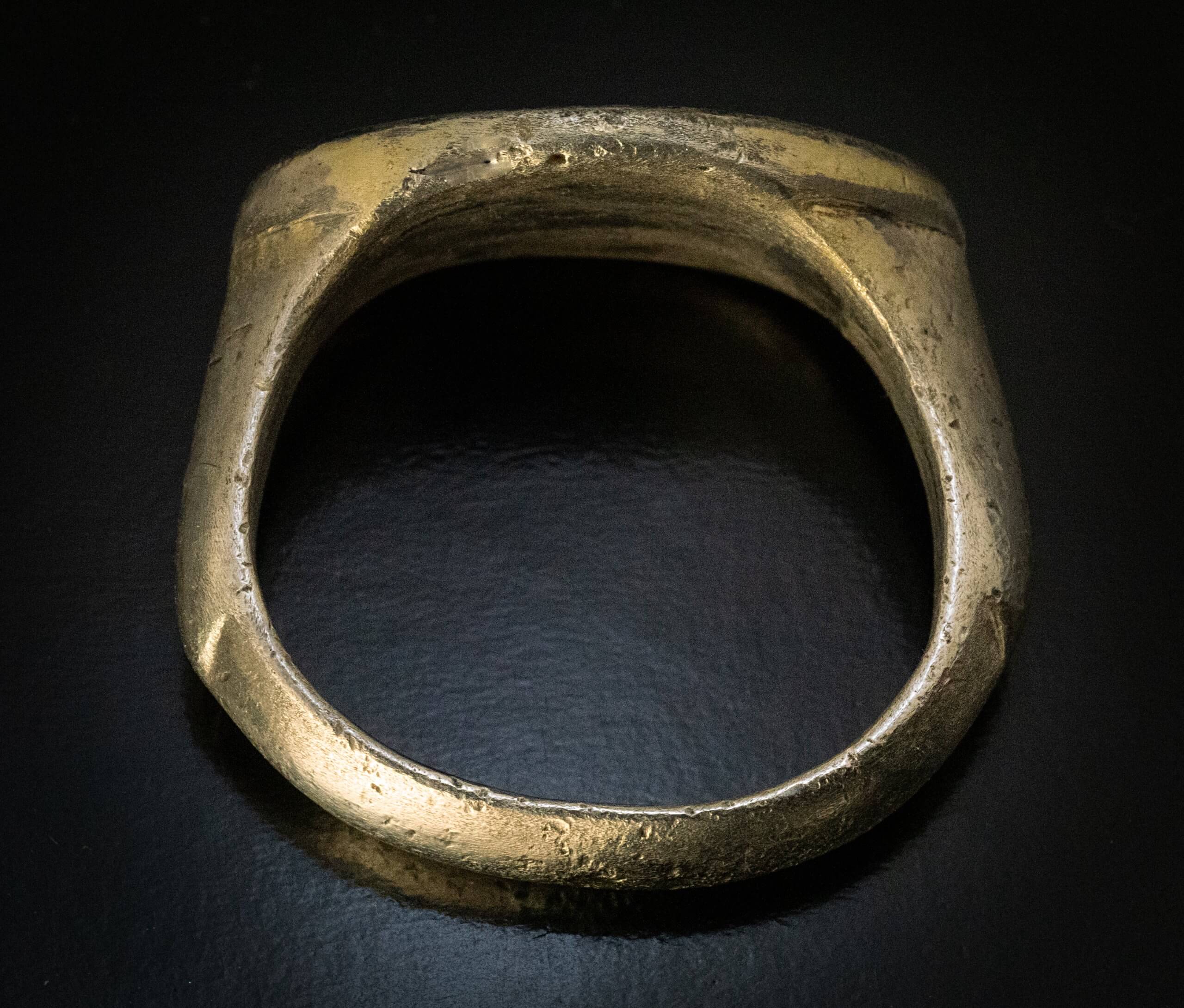 Metal analysis indicates that the remaining gilding contains approximately 31.54% pure gold. The presence of a small amount of mercury confirms that the ring was gilded using the ancient “mercury” or “fire gilding” technique.